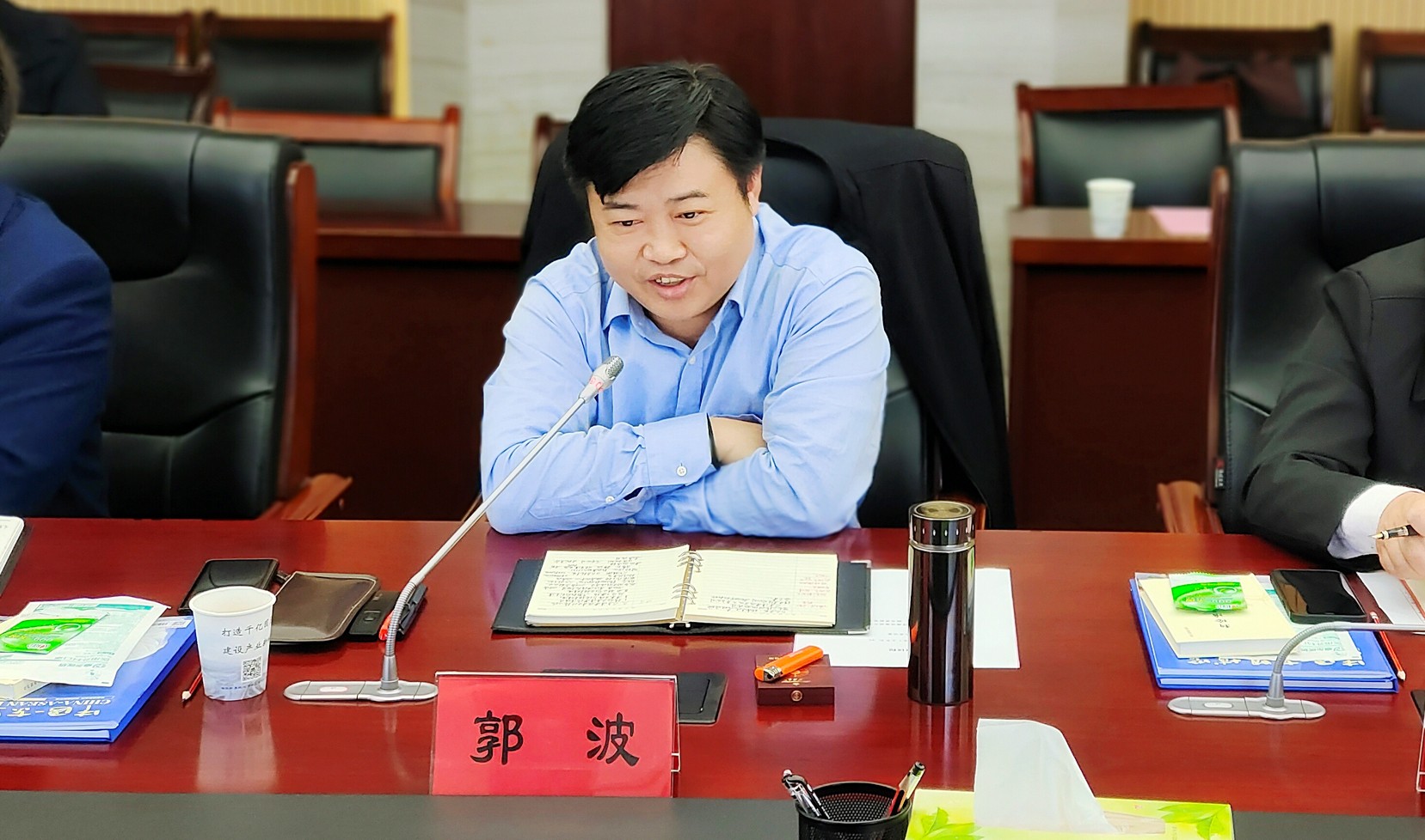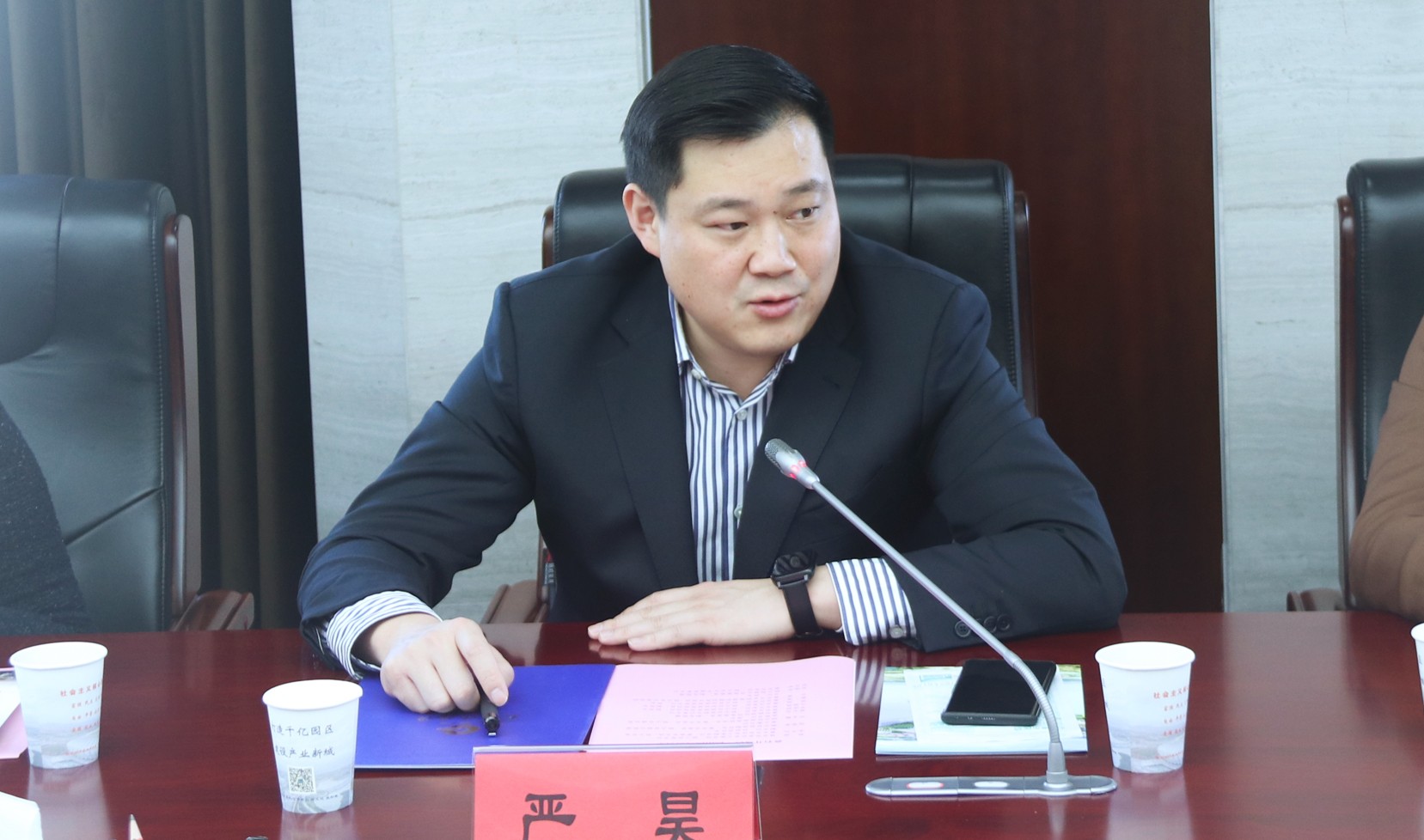 11月12日上午,嚴(yán)昊主席與湖北黃石經(jīng)濟(jì)技術(shù)開發(fā)區(qū)黨工委書記、鐵山區(qū)委書記郭波會(huì)談,共謀合作,共話未來。
