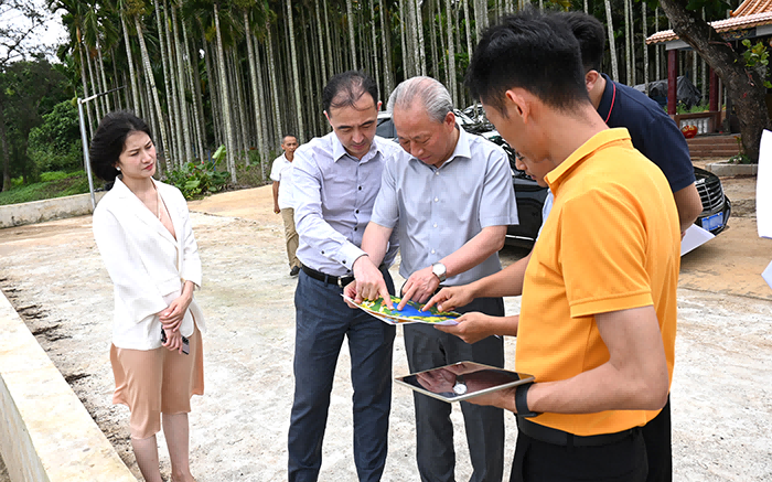 考察團(tuán)一行在美容水庫(kù)周邊大路鎮(zhèn)田塘園村、上水村、官站村等具體點(diǎn)位上仔細(xì)推敲區(qū)域總部選址落地設(shè)計(jì)方案,并現(xiàn)場(chǎng)考察了大路鎮(zhèn)山底村荔枝園農(nóng)莊。隨后,嚴(yán)介和理事長(zhǎng)在荔枝園農(nóng)莊同瓊海市委常委、常務(wù)副市長(zhǎng)潘艷紅就區(qū)域總部落地瓊海以及鄉(xiāng)村振興等項(xiàng)目進(jìn)行深入交流。