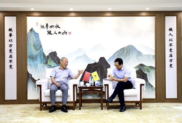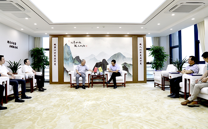 7月5日下午,嚴(yán)介和理事長(zhǎng)同番禺區(qū)委常委、區(qū)政協(xié)黨組副書記、區(qū)委統(tǒng)戰(zhàn)部長(zhǎng)鄧耀棋在番禺機(jī)關(guān)會(huì)談,雙方就政治、經(jīng)濟(jì)、文化熱點(diǎn)話題一路暢談。莊嚴(yán)系CEO、港珠澳建設(shè)董事局主席金亮陪同。