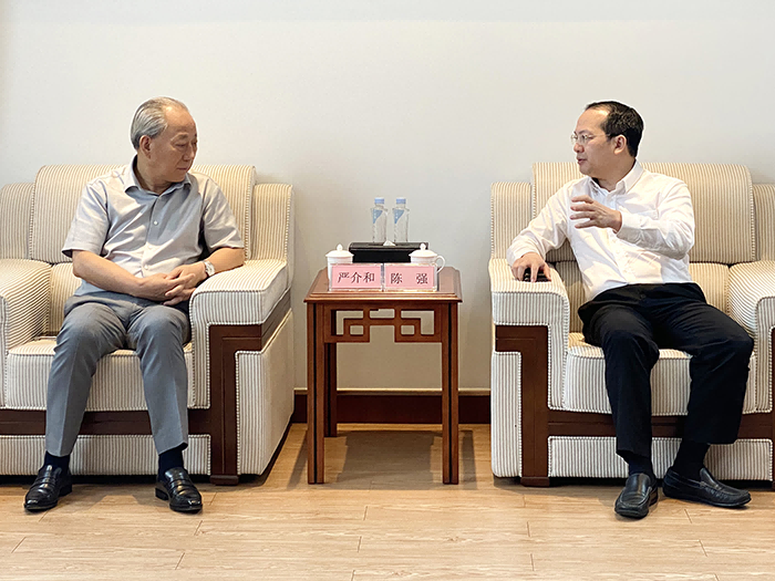 7月5日下午,嚴(yán)介和理事長(zhǎng)同廣州城投黨委書(shū)記、董事長(zhǎng)陳強(qiáng)會(huì)談,雙方進(jìn)一步增加了解,增強(qiáng)理解。莊嚴(yán)系CEO、港珠澳建設(shè)董事局主席金亮陪同。