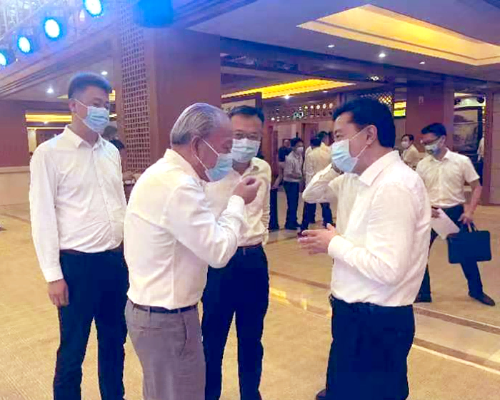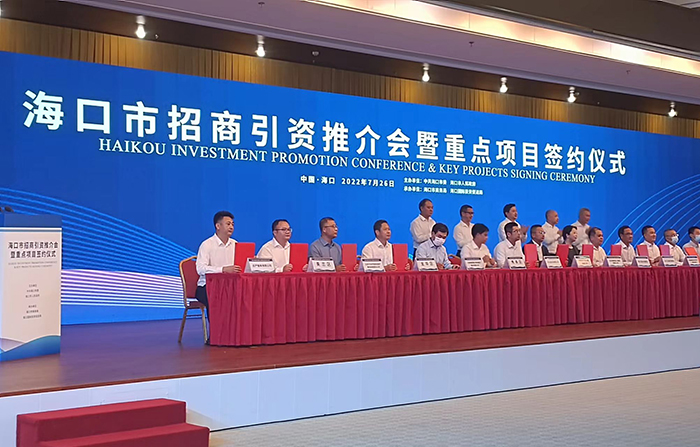 7月26日,嚴(yán)介和理事長受邀出席??谑姓猩桃Y推介會暨重點項目簽約儀式。